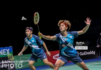 男子ダブルスは、第5シードの小林・保木が、バリ島開催のワールドツアーファイナルで2日続けて敗れた雪辱を期すテオ・イーイ/オン・ユーシンを返り討ちにし、前回、世界選手権・バーゼル大会に続いて最終日に残った