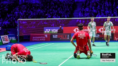 決勝では、ギデオン/スカムルジョと同じく過去に2度(14年と19年)、全英を制している自国の先輩、ヘンドラ・セティアワン/モハンマド・アーサンに挑む