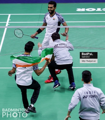 トマス杯準決勝もうひと試合は、デンマークが絶対エース、ビクター・アクセルセンの今大会5つ目の勝利でインドをリードする。しかし前日の準々決勝、韓国戦と同じく、第1ダブルス、そして期待の第2シングルス、アナース・アントンセンが振るわず、逆に1対2と窮地に追い込まれる。それでも前日勝利の立役者、第2ダブルスのアナース・スカールプ・ラスムセン/フレデリク・スゴールが勝って2対2。こちらも勝敗の行方は最終種目に委ねられた