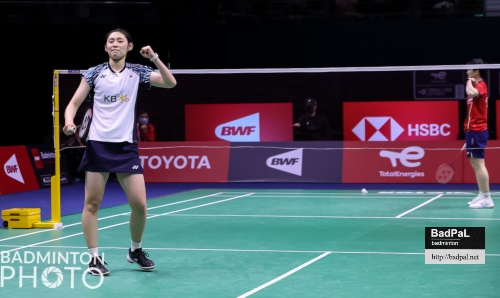 第3シングルスに出場する2人を比較すると、直近のアジア選手権でアン・セヨン、山口茜を連破して優勝するなど、実績、世界ランクともにワン・ジューイが上。中国の連覇はほぼ決まったかにみえた。しかし試合開始と同時に、チームメイトの戦いぶりに刺激を受けた韓国のシム・ユジンがこうした机上の見方に抗うファイティングスピリットを見せ、引けを取らないどころか、先行する展開で20-17とゲームポイントをつかむ。負けられないワン・ジュ―イも凌いで逆にゲームポイントを奪い返すが、シム・ユジンは譲らず、ここから一進一退の攻防を繰り広げて28-26、オープニングゲームを競り勝つ