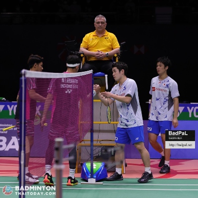 男子ダブルスの小林・保木は、試合開始直後から着々と点数を重ねていくが、明らかに対戦相手、ムハンマド・リアン・アルディアント/ファジャル・アルフィアンの様子がおかしい。腰に故障を抱えていたファジャルが、シャトルに反応できず棒立ちの状態を続けた後、日本ペアのリードが13-4となったところで棄権。試合時間10分に満たないあっけない幕切れに