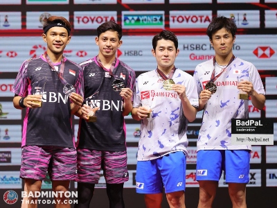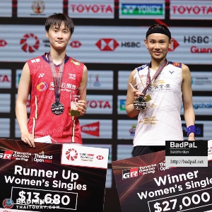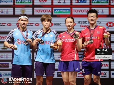 混合ダブルスは、19年に全英を制したツェン・シウェイ/ホワン・ヤチオンが、中止となった昨年をまたいで大会連覇を狙ったホスト国タイ期待のデチャポン・プアバラヌクロー/サプシリー・テラッタナチャイを試合時間1時間ちょうどで止め、中国に唯一のタイトルをもたらした。