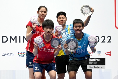 混合ダブルスは、現在実力ナンバーワンの世界1位ツェン・シウェイ/ホワン・ヤチオンが出場取りやめ、同3位の渡辺勇大・東野有紗はエントリーしていないことから、2位と4位が順当に決勝まで勝ち上がった。そして頂点に立ったのは、デチャポン・プアバラヌクロー/サプシリー・テラッタナチャイ。ワン・イーリュ/ホワン・ドンピンに今シーズン3連勝で、通算対戦成績を8勝8敗のタイに戻した