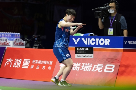 1対1となって迎えた日中女子シングルスエース同士の一戦。前日、タイ2番手のポーンパウィー・チョチュウォンに敗れ、チームに貢献できず意気消沈していたところからの切り替えが山口茜の課題だったが、プレッシャーもあってかミスの出るチェン・ユーフェイからきっちりストレート勝ちを収め、チームの勝利に王手をかけた