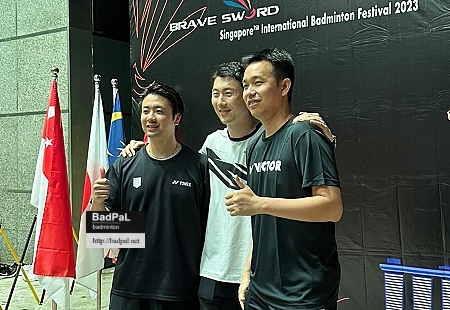 インドネシア、韓国、日本を代表する世界的なダブルスプレーヤーである3人は、ロー・キーンユーやデレク・ウォンをはじめとする地元の代表・元代表選手らとともに、参加者との交流機会を持った後、エキシビションマッチを披露した