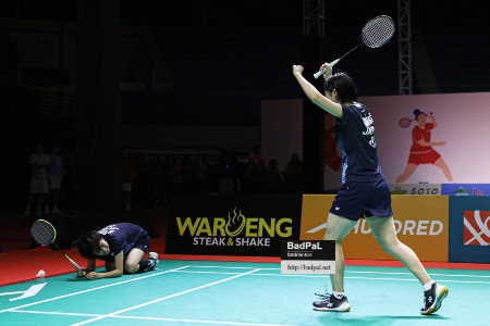 ところがこの窮地にも山北・須藤はさほど動揺をのぞかせず、変わらぬ姿勢で臨み続けた結果、連続得点等で土壇場、19-19で追いつくことに成功する。さらに、ここから19-20、20-21と相手が先にマッチポイント2つをつかむが、これらも凌いで逆転勝ち。とりわけ気持ちの面で形勢不利でもぶれない強さを示した内容で、アジアの頂点に立った