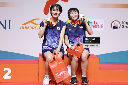 今年3月のジュニア上位大会「グランプリ」2連戦、オランダジュニアとドイツジュニアで、それぞれベスト4、優勝という好結果を挙げたこと等に連動する世界バドミントン連盟(BWF)の女子ダブルス(※選手ごとの)ジュニアランキング(現在、山北6位、須藤16位)に基づき、第1シードで今大会に臨んだ山北と須藤。奇しくも、5日前の団体戦決勝(対インドネシア)もこの日とまったく同じスコアで勝っている