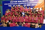 インドネシア・スラバヤで4月29日から開催されていたワリコタカップ。ジュニアからシニアまで22種目にカテゴリー分けされたインドネシアバドミントン協会(PBSI)管轄のオープン大会で、日本から参戦した「富岡ジャパン」の選手がシングルス3種目、ダブルス6種目の決勝に進んだ。このうち優勝の栄冠を手にしたのは、大堀彩選手、川上紗恵奈選手、三橋健也・渡辺勇大組、渡辺勇大・東野有紗組、大堀彩・東野有紗組、吾妻咲弥・仁平菜月組、水井ひらり・福本真恵七組。中でも大堀、渡辺、東野の3選手は2種目制覇を成し遂げた。一方、仁平菜月選手と山澤直貴・吾妻咲弥組は、決勝で惜しくも競り負け、準優勝だった